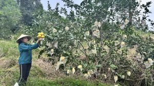 Đặc biệt, 100% quả cam trong vườn đều được bao trái cẩn thận, giúp hạn chế sâu bệnh, giảm tác động của thời tiết, đồng thời nâng cao giá trị thương phẩm. Nhờ vậy, cam không chỉ đẹp mã, đồng đều, mà chất lượng và hương vị cũng vượt trội hơn hẳn, được người tiêu dùng đánh giá cao.