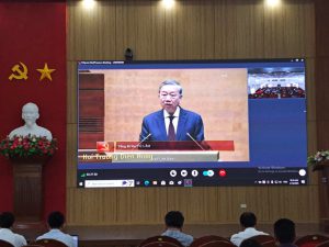 Tham dự tại điểm cầu tỉnh Hà Tĩnh có Bí thư Tỉnh ủy Nguyễn Duy Lâm, Phó Bí thư Thường trực Tỉnh ủy Trần Thế Dũng, Chủ tịch UBND tỉnh Võ Trọng Hải; các đồng chí nguyên lãnh đạo tỉnh; các đồng chí Ủy viên Ban Thường vụ Tỉnh ủy, Ủy viên Ban Chấp hành Đảng bộ tỉnh. Ngoài ra, tại Hà Tĩnh còn có 414 điểm cầu các cấp, ngành, đơn vị với 46.868 đại biểu tham dự.