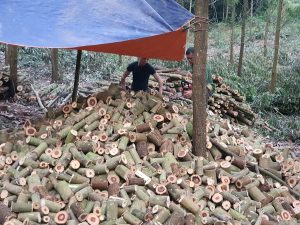 – Gỗ: Cây gỗ keo tươi được đốn chặt không bị sứt vỏ, đường kính 5-20 cm.