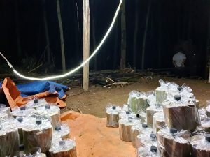 – Cách 2: Trộn hỗn hợp cám ngô, cám gạo vào cùng với mùn cưa (có thể sử dụng mùn cưa từ quá trình cắt, xẻ gỗ). Xếp chặt các khúc gỗ vào túi nilon với khối lượng 3,75 kg/bịch. Sau đó bổ sung thêm hỗn hợp cám, mùn cưa vào các khe hở và trên bề mặt bịch phôi.