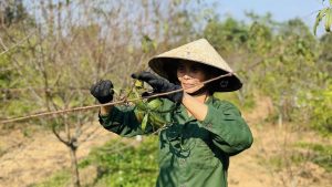 Những ngày này, không khí lao động tại thôn Kim Mã, xã Đức Minh trở nên nhộn nhịp hơn bao giờ hết. Trên các vườn đồi, bà con nông dân đang tập trung tuốt lá, chăm sóc từng gốc đào – công đoạn kỹ thuật quan trọng, quyết định việc đào có ra hoa đúng dịp Tết Nguyên đán hay không.