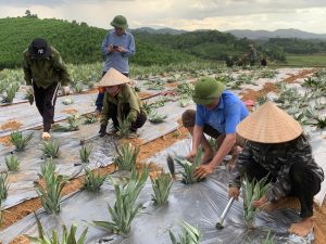 Người dân xã Cẩm Hưng phát triển mô hình trồng dứa theo hướng liên kết, được hướng dẫn kỹ thuật và bao tiêu sản phẩm bởi Công ty Cổ phần Thực phẩm xuất khẩu Đồng Giao.