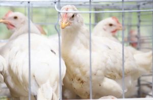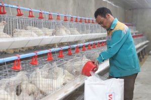 Ông Hải cho đàn gà siêu đẻ ăn theo quy trình kỹ thuật của mô hình liên kết