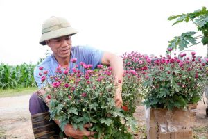 Ngay từ rằm tháng 8 âm lịch, anh đã bắt tay vào làm đất, xuống giống trên toàn bộ diện tích đất thuê. Đất được xử lý kỹ lưỡng để phù hợp với đặc tính sinh trưởng của các loại hoa. Riêng hoa cúc – loại hoa chủ lực phục vụ thị trường Tết – được anh trồng với hơn 20 giống khác nhau như cúc vạn thọ, cúc vàng, cúc mâm xôi… xen kẽ theo từng luống, thuận tiện cho việc chăm sóc và thu hoạch.