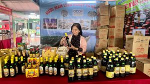 Tại khu gian hàng Hà Tĩnh, nhiều sản phẩm OCOP quen thuộc tiếp tục khẳng định được sức hút riêng nhờ chất lượng ổn định và thương hiệu ngày càng được yêu thích. Gian hàng mật ong Thức Dung của chị Trần Thị Kim Dung, thôn Chế Biến, xã Sơn Kim 2 là một trong những điểm nhấn của khu vực này. Với các sản phẩm mật ong nguyên chất, mật ong ngâm thảo dược và bộ quà tặng được thiết kế bắt mắt, gian hàng luôn tấp nập khách đến dùng thử và tìm hiểu thông tin. Chia sẻ với chúng tôi, chị Dung cho biết: “Tham gia hội chợ giúp cơ sở có cơ hội tiếp cận người tiêu dùng rất lớn. Nhiều khách từ Nghệ An, Quảng Trị, Hà Nội…ghé gian hàng, dùng thử mật ong và phản hồi tốt. Đây là dịp để chúng tôi lắng nghe ý kiến khách hàng, giới thiệu sản phẩm đến thị trường rộng hơn và tìm kiếm đối tác phân phối.”