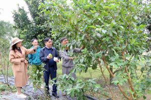 Cán bộ địa phương tham quan khu vực trồng ổi, ghi nhận hiệu quả chăm sóc và năng suất