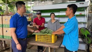 Tiếp đó, đoàn đã đến thăm Công ty cổ phần Yuuki Farm tại Phường Quy Nhơn của giám đốc Trịnh Hưng Công (sinh năm 1989). Sau nhiều năm học tập và làm việc ở Nhật Bản, anh Công đã trở về quê hương và khởi nghiệp bằng mô hình sản xuất rau, củ, quả hữu cơ. Mô hình hoạt động theo hình thức đa giá trị kết hợp giữa sản xuất và phục vụ tham quan trải nghiệm đồng thời nhận các đơn tư vấn, hỗ trợ, đào tạo, liên kết với các cá nhân, đơn vị có nhu cầu khởi nghiệp bằng mô hình rau, củ, quả hữu cơ. Do đó, anh không chỉ mở rộng quy mô sản xuất, còn còn hỗ trợ nhiều đơn vị khởi nghiệp thành công bằng mô hình này. Hiện công ty đang sản xuất 6,4 ha, mỗi ngày trang trại cung ứng hàng trăm kg rau quả sạch cho thị trường trong và ngoài nước. Được sản xuất theo quy trình đạt chuẩn nên giá bán cao gấp hơn 2-3 lần các sản phẩm sản xuất thông thường. Ở đây, đoàn đặc biết ấn tượng khi được tham quan khu sơ chế, bảo quản, đóng gói sản phẩm sau thu hoạch và khu sản xuất các thảo dược phòng trị bệnh, bổ sung dinh dưỡng cho cây trồng từ các nguyên liệu hữu cơ. Vừa được nhìn tận mắt vừa được anh chia sẻ nhiều kinh nghiệm quý mà anh có được trong suốt quá trình vận hành mô hình này. Qua đó các thành viên trong đoàn đã tiếp cận được những kiến thức và kinh nghiệm về kỹ thuật canh tác hữu cơ, sơ chế, bảo quản, đóng gói, vận chuyển và xây dựng thương hiệu. Anh Công khẳng định chắc nịch với đoàn: “Muốn phát triển nông nghiệp hữu cơ thành công điều đầu tiên phải cần người có tâm huyết”.